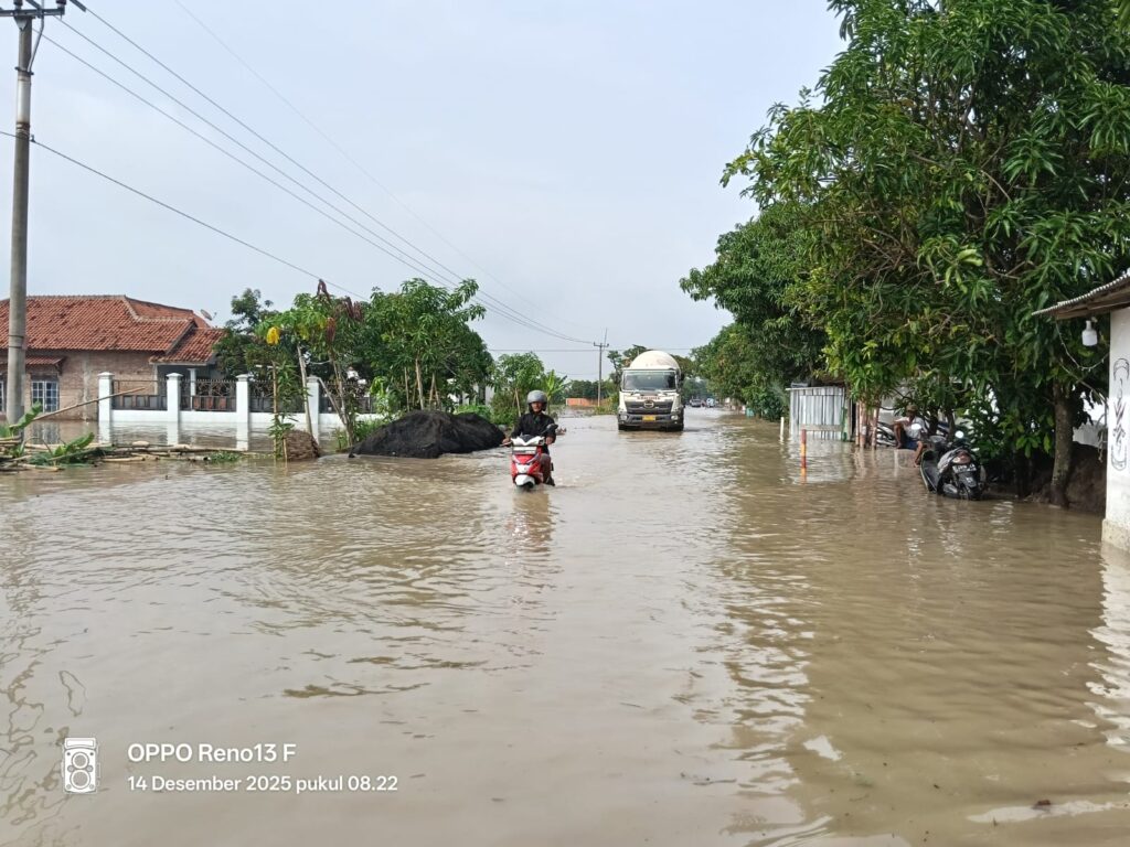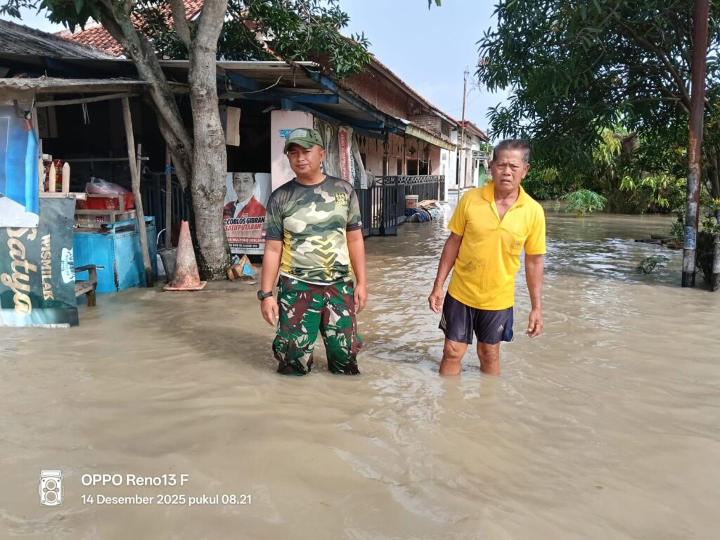 Cirebon – Anggota Koramil 0620-19 Arjawinangun, Serka Nanang selaku Babinsa Desa Kalianyar, melaksanakan kegiatan monitoring wilayah terdampak banjir di Desa Kalianyar, Kecamatan Panguragan, Kabupaten Cirebon, pada Minggu, 14 Desember 2025.