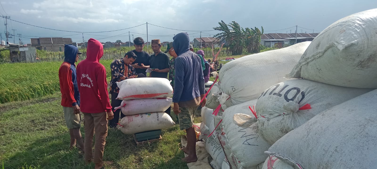 Kegiatan yang dimulai pukul 15.00 WIB tersebut merupakan bagian dari upaya pendampingan TNI kepada petani guna mendukung program ketahanan pangan nasional serta memastikan hasil panen petani dapat terserap dengan baik oleh Bulog.