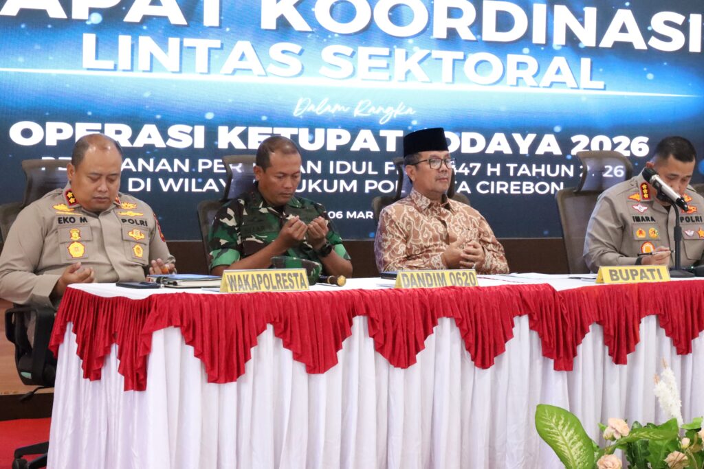 Cirebon – Komandan Kodim 0620/Kabupaten Cirebon Letkol Inf Nizar Bachtiar, S.H., M.I.H menghadiri Rapat Koordinasi (Rakor) Lintas Sektor dalam rangka kesiapan pelayanan dan pengamanan Hari Raya Idul Fitri 1447 Hijriyah yang digelar di Mapolresta Cirebon, Jumat (6/3/2026).