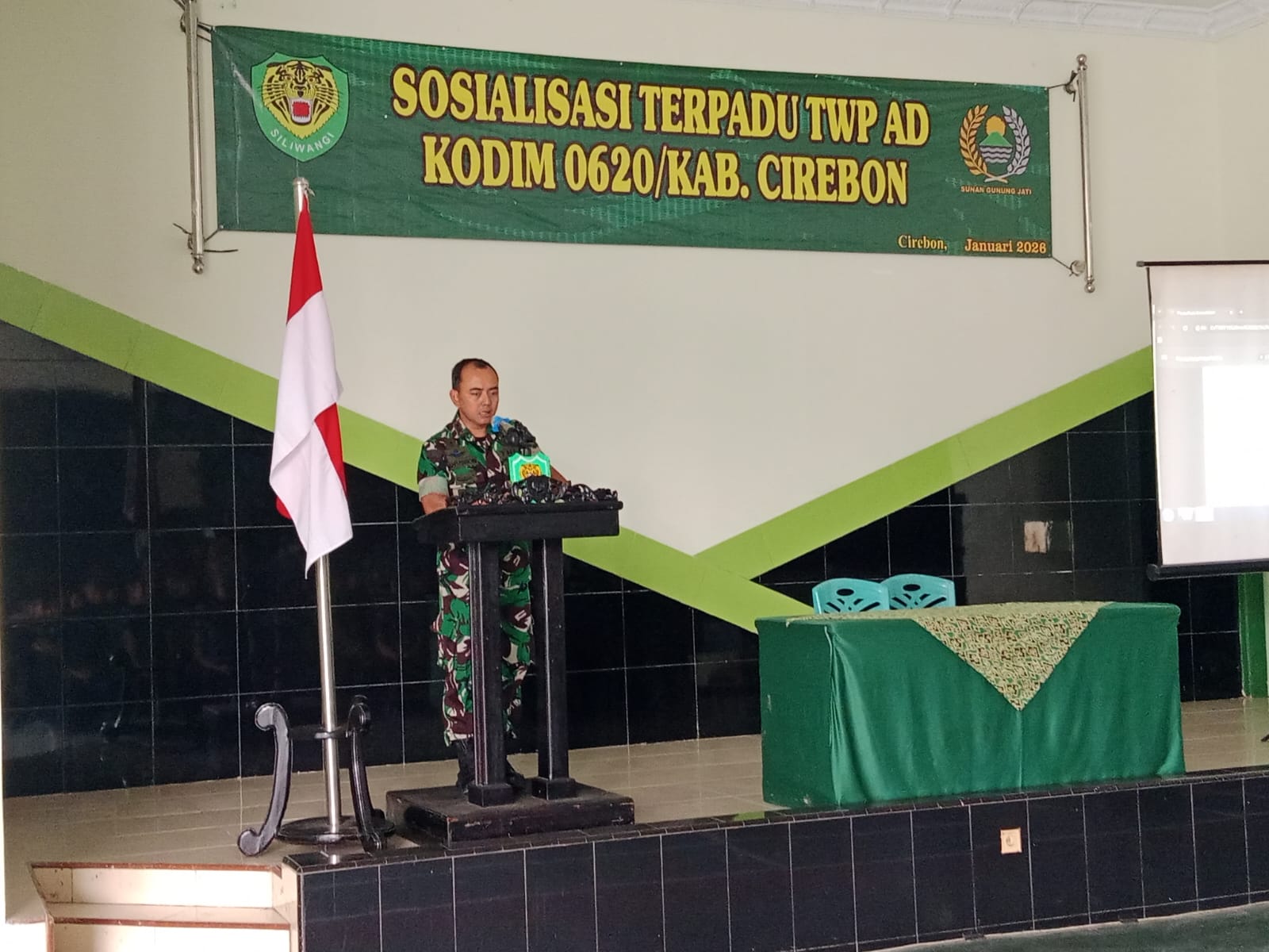Kabupaten Cirebon – Senin, 12 Januari 2026 Komandan Kodim (Dandim) 0620/Kabupaten CirebonLetkol Inf Mukhammad yusron,S.A.P melaksanakan kegiatan Sosialisasi Terpadu Tata Wilayah Pertahanan (TWP) Angkatan Darat Tahun Anggaran 2026, bertempat di Makodim Kabupaten Cirebon,
