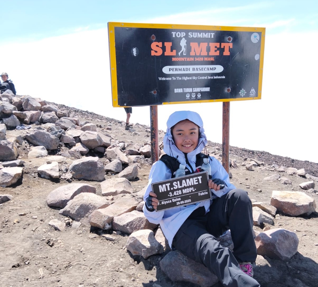 Gunung Slamet, 28 September 2025 – Semangat petualangan dan cinta alam sejak dini ditunjukkan oleh F. Alyssa Quinn, seorang siswi sekolah dasar yang berhasil mencapai puncak Gunung Slamet dgn ketinggian 3.428 MDPL ,(atap Jawa Tengah) bersama keluarganya. Bukan sekadar pendakian biasa, perjalanan ini penuh makna, perjuangan, dan inspirasi.