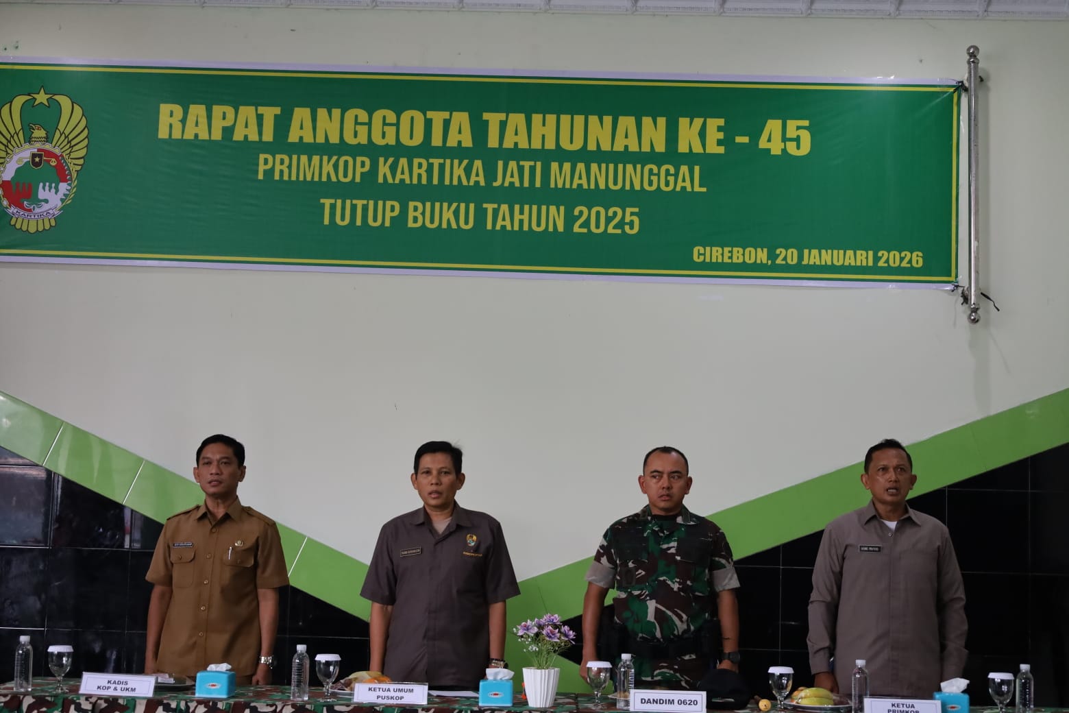 Cirebon, 20 Januari 2026 — Dalam rangka evaluasi kinerja dan persiapan menghadapi tahun anggaran berikutnya, Kodim 0620/Kabupaten Cirebon melaksanakan Rapat Akhir Tahun TA 2025. Rapat tersebut diikuti oleh seluruh perwira, tamtama, dan pegawai negeri sipil (PNS) yang bertugas di Makodim 0620/Kabupaten Cirebon.