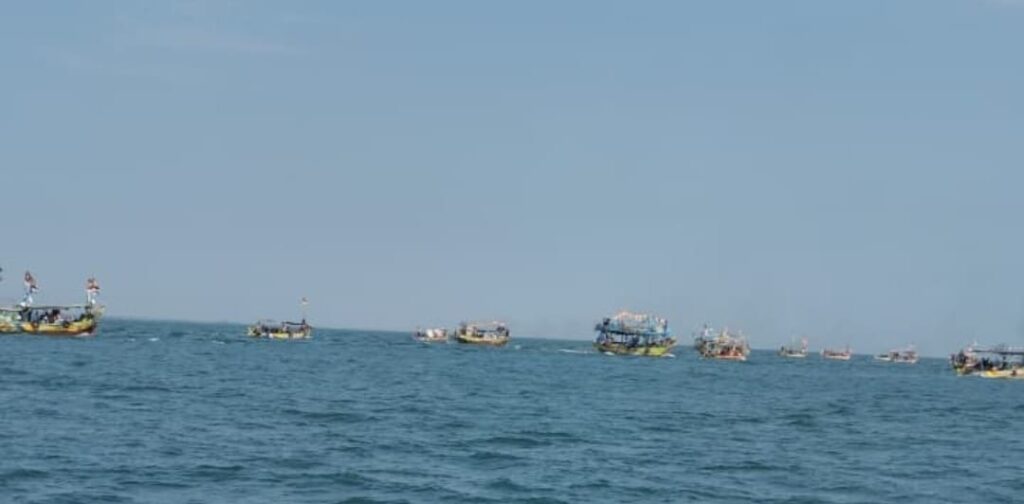 Gebang, 13 Oktober 2025 — Tradisi budaya tahunan Larung Sesaji dalam rangka Sedekah Laut kembali digelar meriah oleh masyarakat Desa Gebang Mekar, Kecamatan Gebang, Kabupaten Cirebon, Minggu (13/10). Kegiatan ini berlangsung khidmat dan penuh semangat gotong royong, diikuti kurang lebih 50 perahu nelayan yang menghias laut sebagai bentuk rasa syukur kepada Tuhan Yang Maha Esa atas hasil laut yang melimpah.