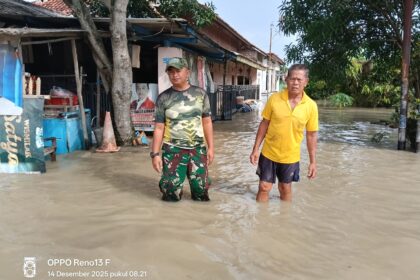 Cirebon – Anggota Koramil 0620-19 Arjawinangun, Serka Nanang selaku Babinsa Desa Kalianyar, melaksanakan kegiatan monitoring wilayah terdampak banjir di Desa Kalianyar, Kecamatan Panguragan, Kabupaten...
