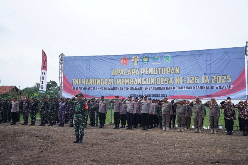 langsung Upacara Penutupan TNI Manunggal Membangun Desa (TMMD) Ke-126 TA. 2025 yang digelar di Lapangan Desa Longok, Kecamatan Sliyeg, Kabupaten Indramayu. Kegiatan ini menandai berakhirnya program terpadu lintas sektoral yang dilaksanakan di wilayah teritorial Kodim 0616/Indramayu dengan tema, “Dengan Semangat TMMD Mewujudkan Pemerataan Pembangunan dan Ketahanan Nasional di Wilayah.”