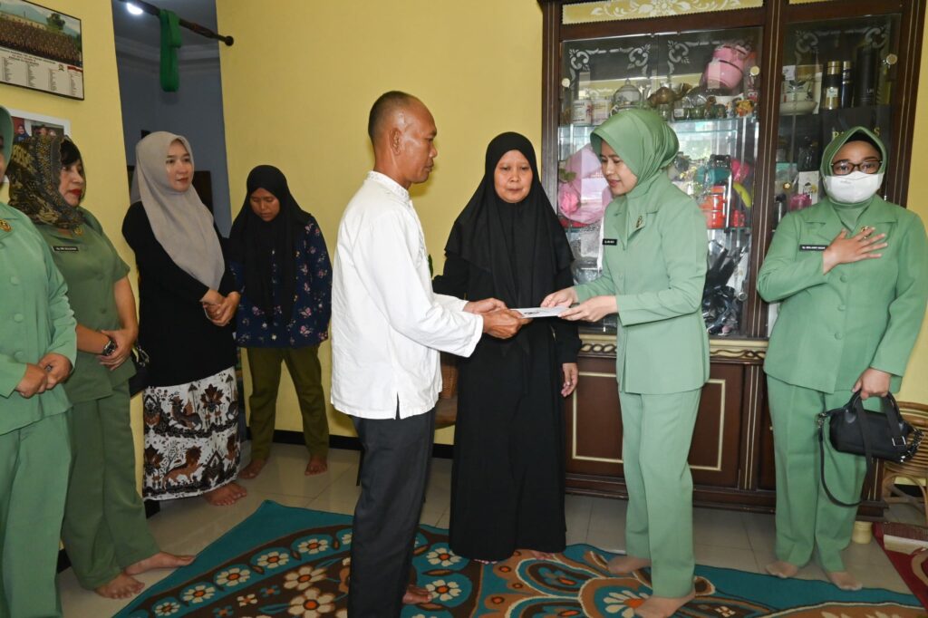 Kegiatan tersebut dipimpin langsung oleh Ketua Persit KCK Koorcabrem 063 PD III/Slw Ny. Lina Hista Soleh Harahap, didampingi para pengurus Persit KCK Koorcabrem 063 PD III/Slw.Dalam pelaksanaannya, rombongan Persit melaksanakan anjangsana sekaligus pemberian tali asih ke beberapa keluarga prajurit dan warakawuri sebagai wujud perhatian dan dukungan moril.