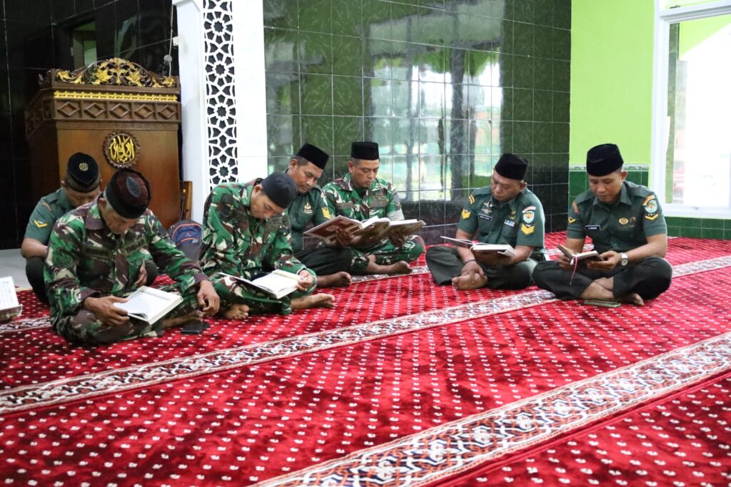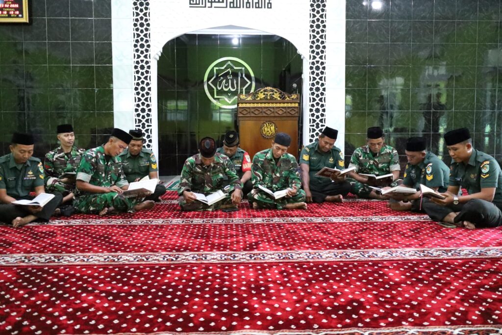 Kabupaten Cirebon, 23 Februari 2026 – Dalam rangka meningkatkan Keimanan dan Ketakwaan kepada Allah SWT di bulan yang penuh berkah bulan Ramadhan ini, personel Kodim 0620/Kabupaten Cirebon melaksanakan kegiatan tadarus Al-Qur’an bertempat di Masjid Al-Muttaqin Kodim 0620/Kab. Cirebon.